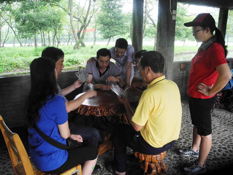 蓮花島這有條河流,流水清澈,頗有小橋流水人家的感覺。大家吃得差不多了,有人玩起了字牌,有人去河邊玩水,有人出去感受自然的氣息,呼吸著新鮮空氣。放松著心情,哼著小調,大家都玩得不亦樂乎!