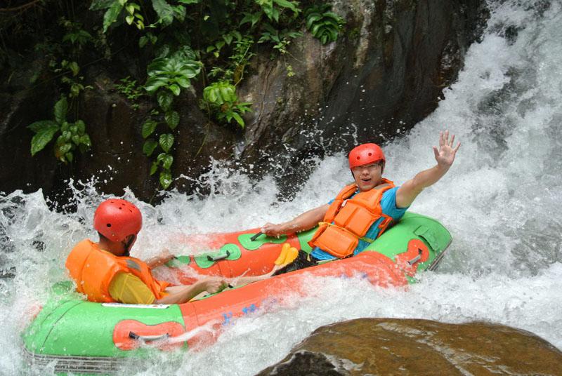 早上大家一行4輛車從桂林鑫海國際出發(fā),車窗外一路優(yōu)美的風(fēng)景惹得一些沒有去過陽朔的同事贊嘆不已,才真正領(lǐng)略了什么叫“桂林山水甲天下,陽朔山水甲桂林”。中午在興坪鎮(zhèn)吃了中午飯,稍作休整后,整裝待發(fā)前往刺激的龍頸河飄流。呈現(xiàn)在眼前是人山人海,盛況空前。買票、發(fā)票、坐景區(qū)車上到漂流起點(diǎn),一路上,大家有說有笑,等待漂流中大家在起點(diǎn)打起水仗,大家其樂融融。驚險(xiǎn)刺激的漂流過程中大家尖叫聲不斷,漂到終點(diǎn)后大家都還覺得意猶未盡。