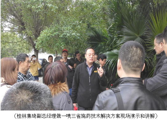 公司副總經(jīng)理李貴義先生做了“新形勢下農(nóng)資營銷的出路”報告,提出做“系統(tǒng)營銷”、做“模式”是當下“大數(shù)據(jù)、云計算、物聯(lián)網(wǎng)、農(nóng)業(yè)信息化、微營銷”等形勢下唯一的出路,同時對“一噴三省一增效”施藥技術(shù)解決方案做了詳細講解,并現(xiàn)場演示了“一噴三省”施藥技術(shù)的神奇效果。
