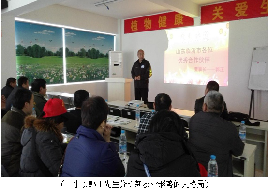 2015年1月17日,桂林集琦生化有限公司迎來了山東臨沂海豐植保有限公司優(yōu)秀事業(yè)合作伙伴共23人來桂學(xué)習(xí)交流。公司董事長郭正先生分析了當前新農(nóng)業(yè)的大格局:我們在中國農(nóng)業(yè)這個大趨勢下,堅定“植物健康 關(guān)愛生命”的發(fā)展理念;堅持走高效、低毒、環(huán)保的產(chǎn)品方向;現(xiàn)代農(nóng)業(yè)提倡科學(xué)植保、公共植保、綠色植保、新時期的植保理念,也是廣大中國人民所追求的健康理念;發(fā)展專業(yè)化統(tǒng)防統(tǒng)治和綠色防控是轉(zhuǎn)變農(nóng)業(yè)發(fā)展方式建設(shè)現(xiàn)代植保、服務(wù)現(xiàn)代農(nóng)業(yè)的重要舉措,是保障農(nóng)產(chǎn)品有效供給和質(zhì)量安全的關(guān)鍵。