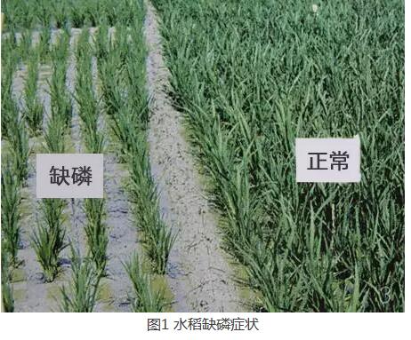 水稻缺磷:一般發(fā)生在早、中稻,形成“僵苗”,返青后生長緩慢,植株矮小,不分蘗或延遲分蘗;葉形狹小,葉面積小,葉片直立成“一炷香”狀,葉身稍呈環(huán)狀卷曲,葉色暗綠蒼老,葉心以下第2-3葉葉尖枯萎呈黃褐色;老根變黃,新根少而纖細(xì);穗小粒少,千粒重降低。