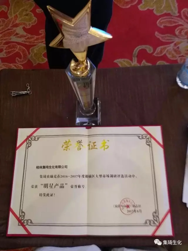 在“聚焦品質(zhì),布橘未來(lái)”的柑橘千商大會(huì)上,桂林集琦生化有限公司蟲螨克榮獲“柑橘明星產(chǎn)