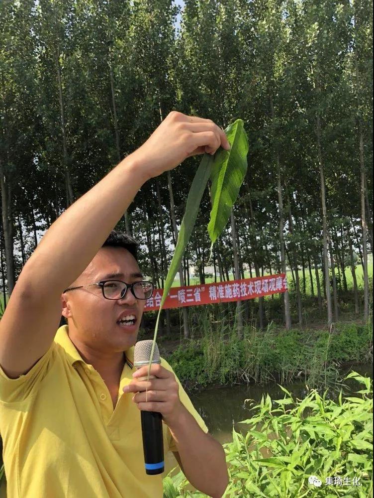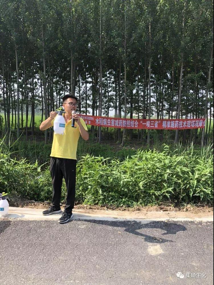 觀摩會由桂林集琦生化有限公司京津廊唐秦業(yè)務經(jīng)理武振強主講,他給大家介紹了水稻“一噴三省”增效減量化精準施藥與綠色防控技術,并組織學員們進行現(xiàn)場演示及觀摩。