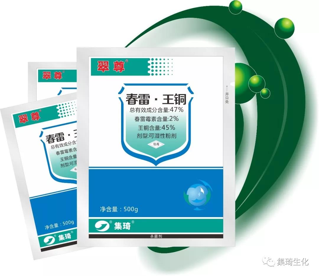 而我公司生產(chǎn)的翠尊(春雷王銅)采用的是干懸浮劑型,此劑型大大提高了春雷王銅的安全性。很好的緩解了銅制劑混配性差的這一問題,另外此劑型吸收利用率非常高,一秒速溶,真正做到農(nóng)藥不攪拌。